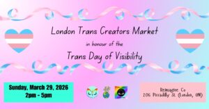 Celebrate the Trans Day of Visibility with fabulous Trans creators! Join us for a market featuring local trans entrepreneurs, artists, authors, and creators. Admission is FREE!